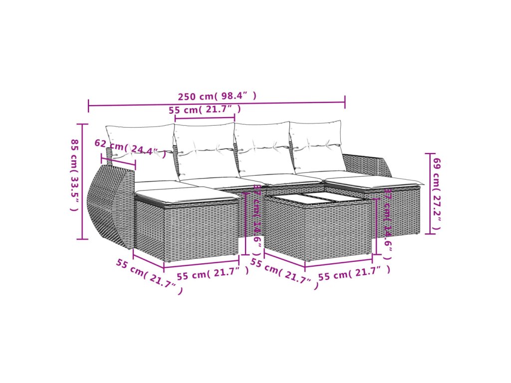 vidaXL 7-dielna záhradná súprava pohoviek s vankúšmi sivá polyratanová