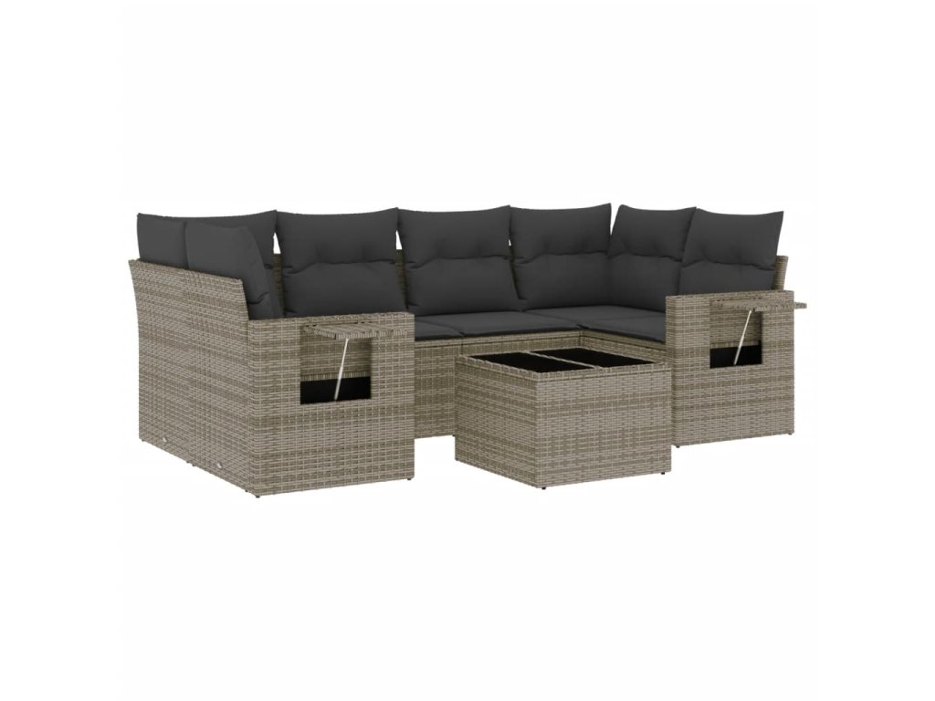 vidaXL 7-dielna záhradná súprava pohoviek s vankúšmi sivá polyratanová