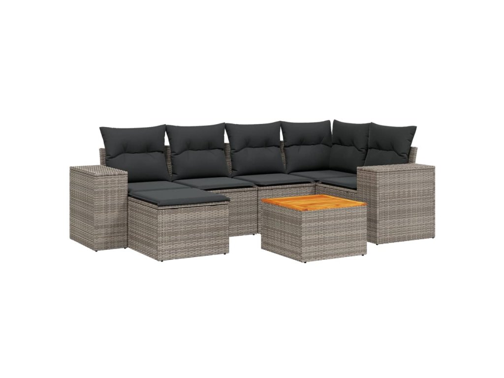 vidaXL 7-dielna záhradná súprava pohoviek s vankúšmi sivá polyratanová