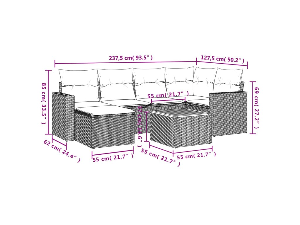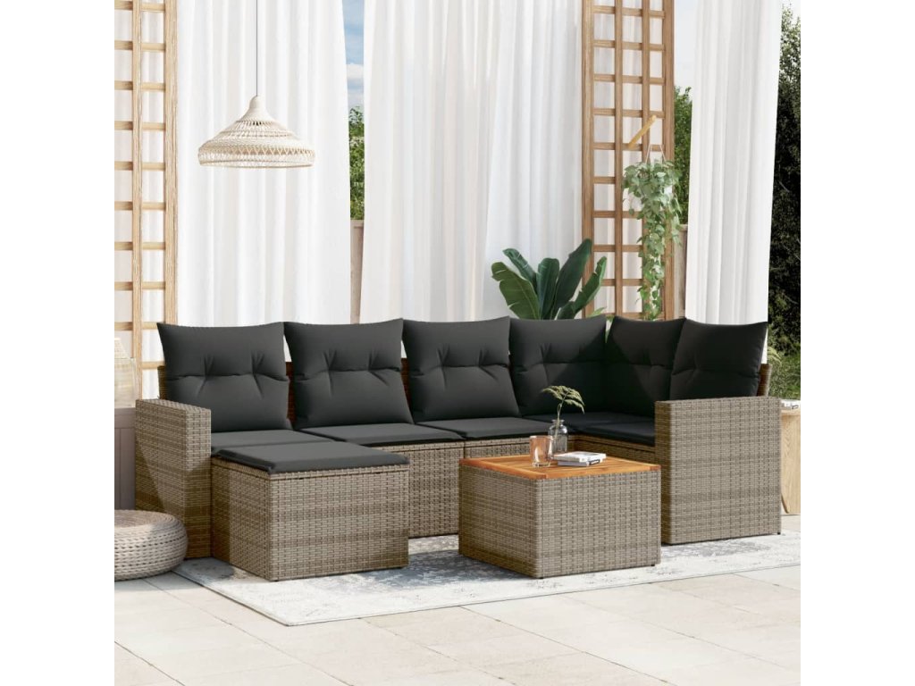 vidaXL 7-dielna záhradná súprava pohoviek s vankúšmi sivá polyratanová
