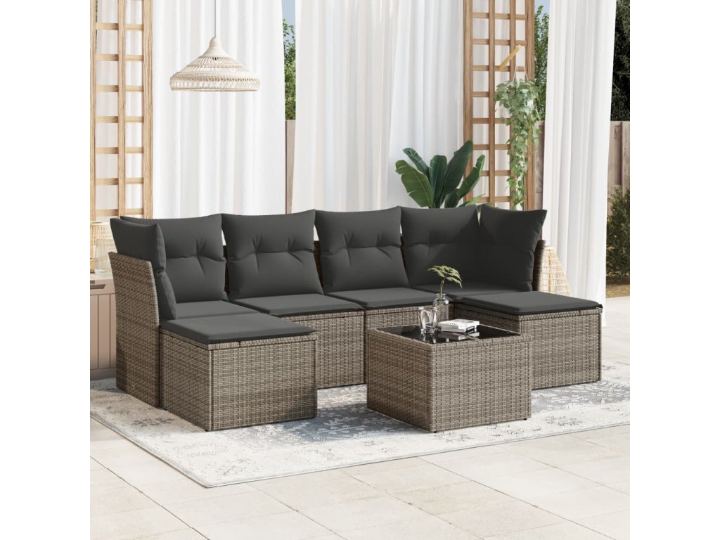 vidaXL 7-dielna záhradná súprava pohoviek s vankúšmi sivá polyratanová