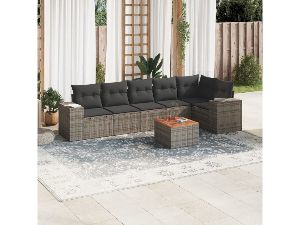 vidaXL 7-dielna záhradná súprava pohoviek s vankúšmi sivá polyratanová