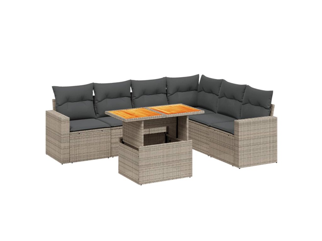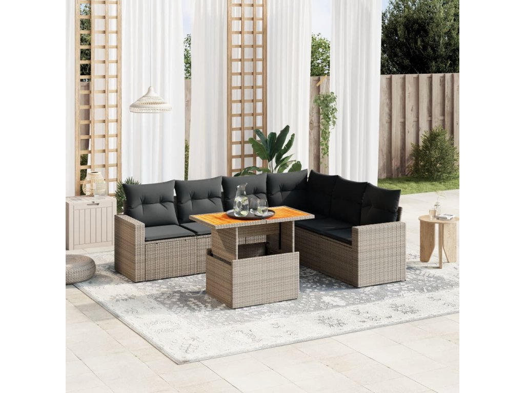 vidaXL 7-dielna záhradná súprava pohoviek s vankúšmi sivá polyratanová
