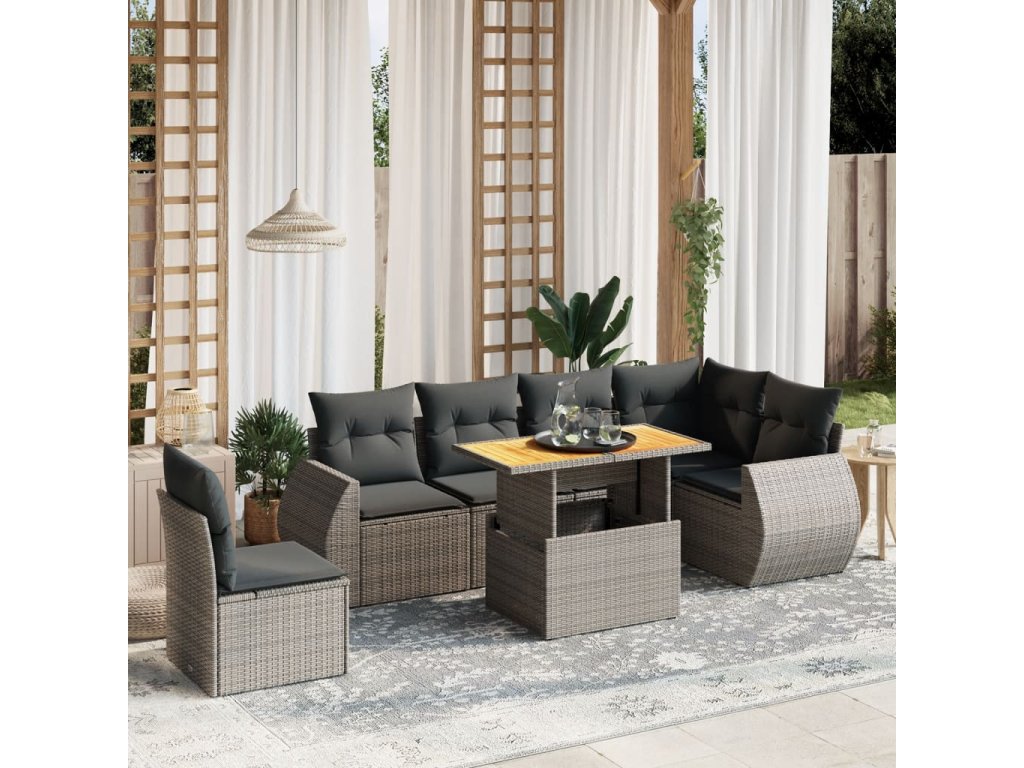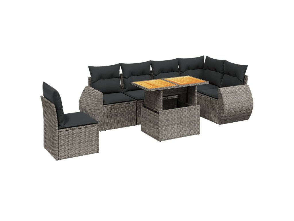 vidaXL 7-dielna záhradná súprava pohoviek s vankúšmi sivá polyratanová