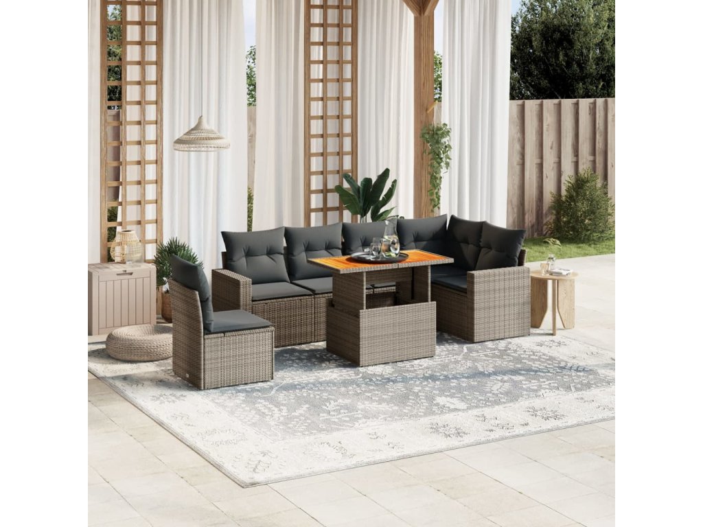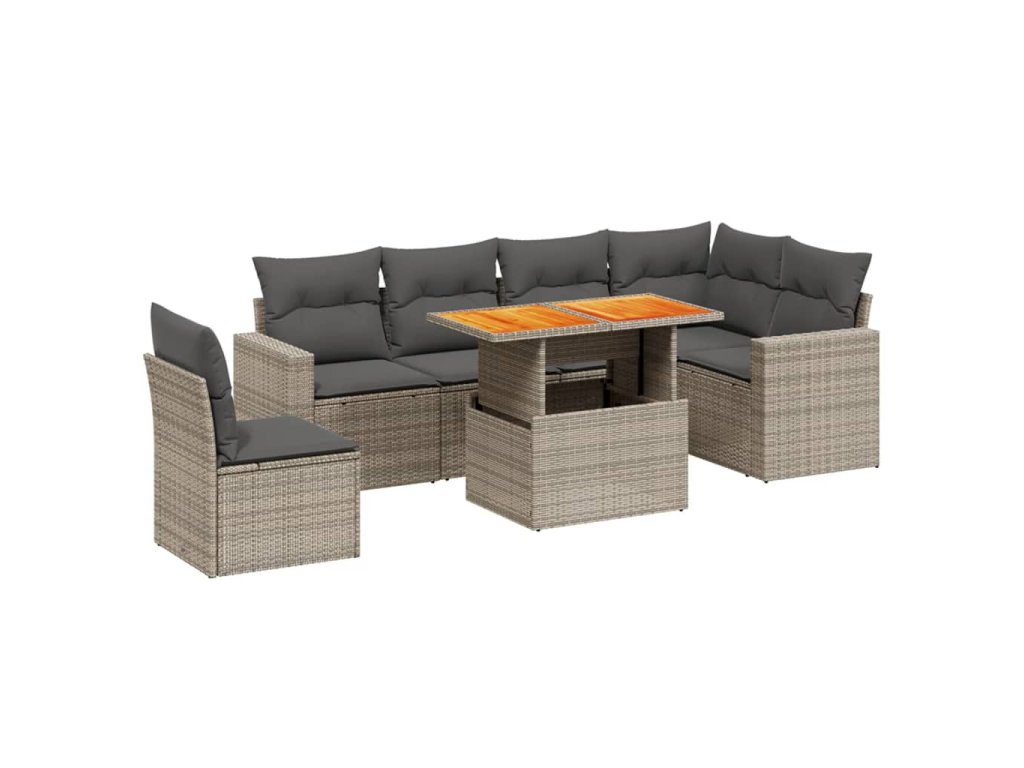 vidaXL 7-dielna záhradná súprava pohoviek s vankúšmi sivá polyratanová