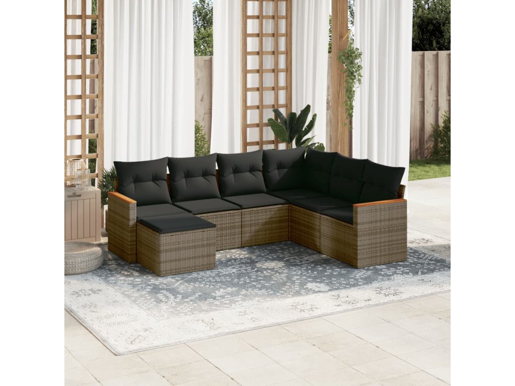 vidaXL 7-dielna záhradná súprava pohoviek s vankúšmi sivá polyratanová