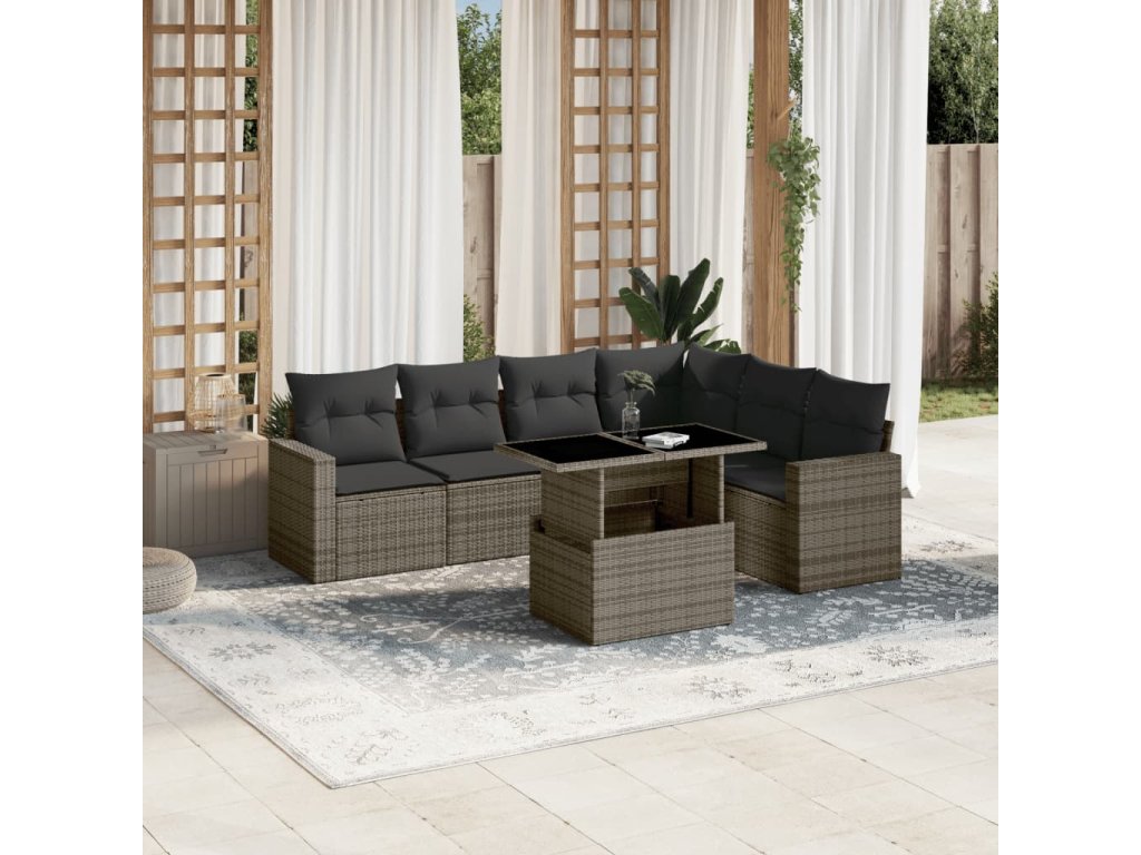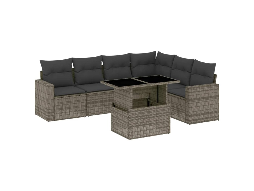 vidaXL 7-dielna záhradná súprava pohoviek s vankúšmi sivá polyratanová