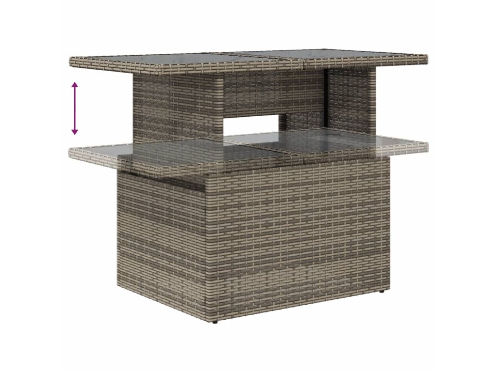 - Nastaviteľná stolová doska: Stolová doska sa dá zdvihnúť, aby bol stôl vyšší, čím sa vonkajší stôl zmení z konferenčného na jedálenský. Je ideálny na pozvanie hostí alebo jedenie vonku.