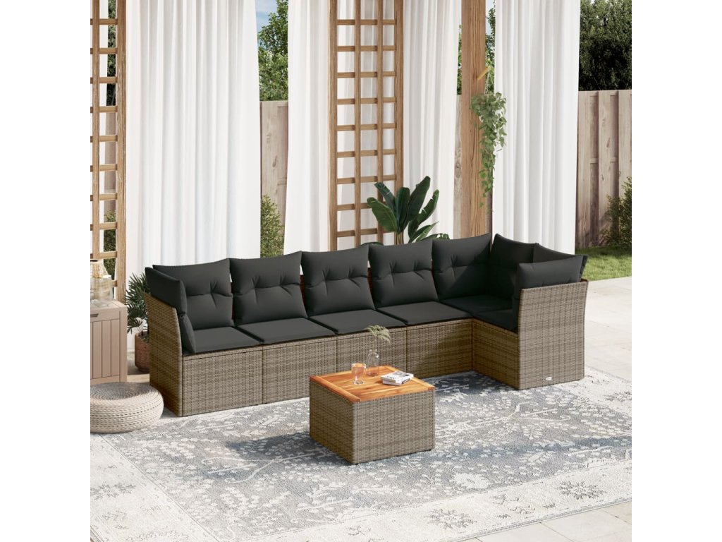 vidaXL 7-dielna záhradná súprava pohoviek s vankúšmi sivá polyratanová
