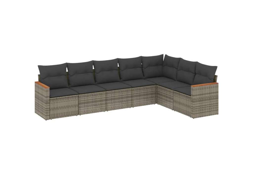vidaXL 7-dielna záhradná súprava pohoviek s vankúšmi sivá polyratanová