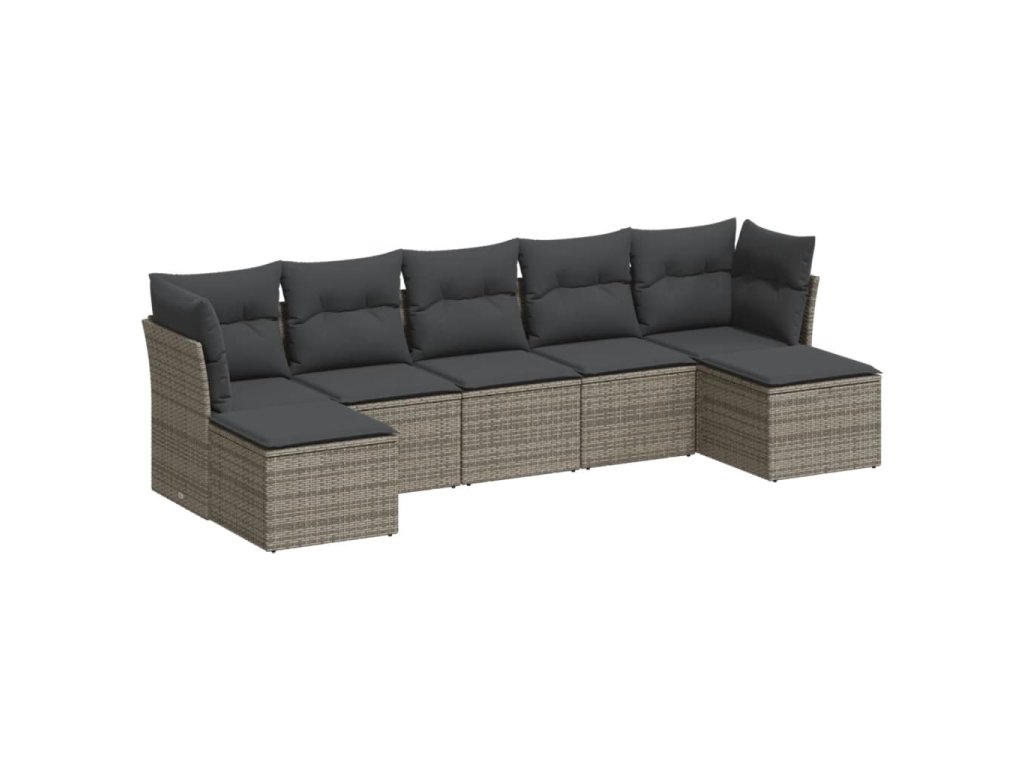 vidaXL 7-dielna záhradná súprava pohoviek s vankúšmi sivá polyratanová
