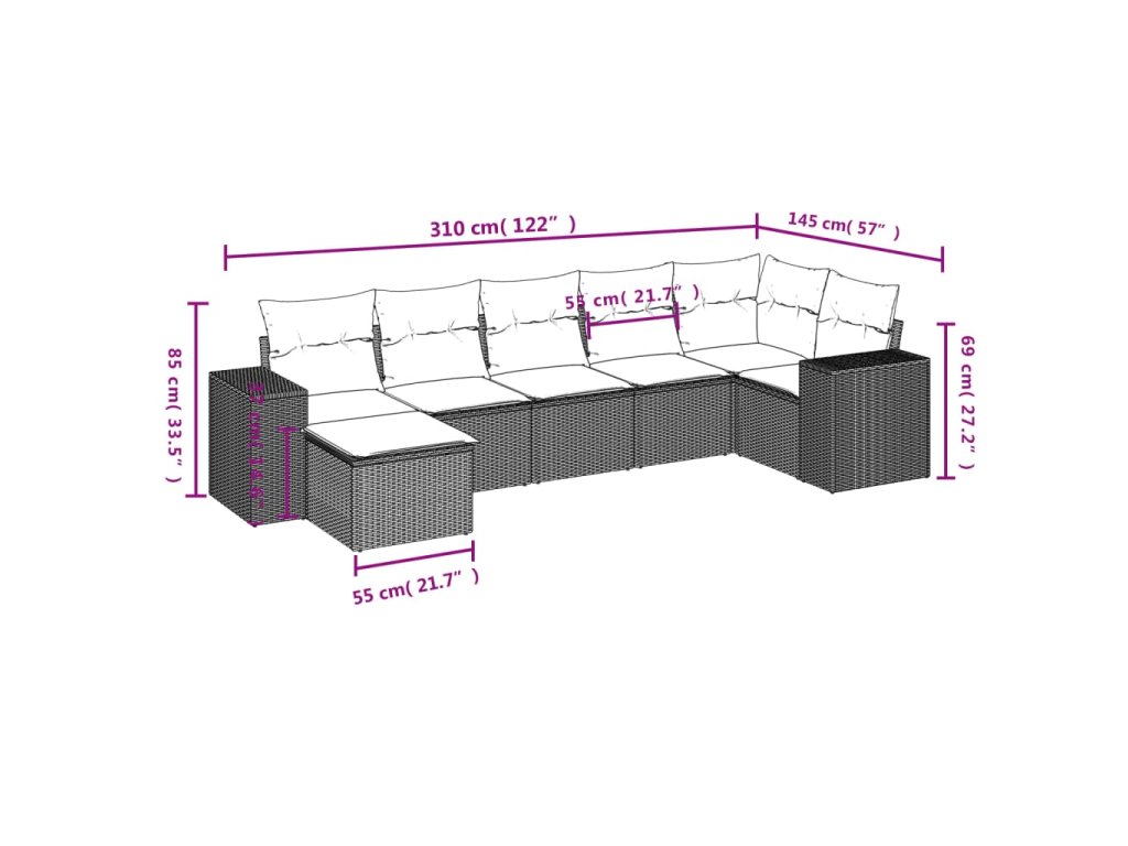 vidaXL 7-dielna záhradná súprava pohoviek s vankúšmi sivá polyratanová