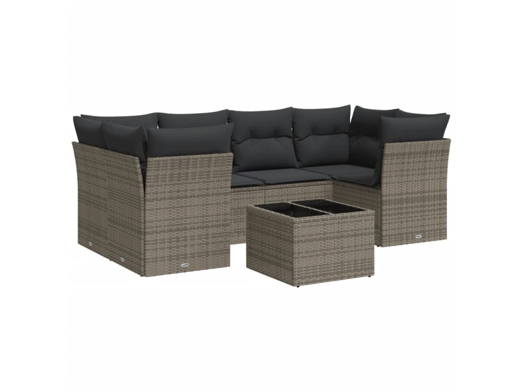 vidaXL 7-dielna záhradná súprava pohoviek s vankúšmi sivá polyratanová