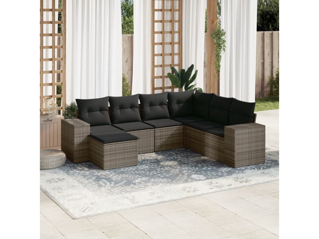 vidaXL 7-dielna záhradná súprava pohoviek s vankúšmi sivá polyratanová