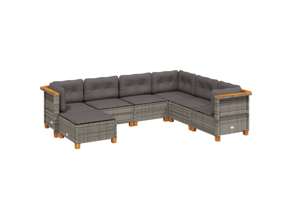 vidaXL 7-dielna záhradná súprava pohoviek s vankúšmi sivá polyratanová