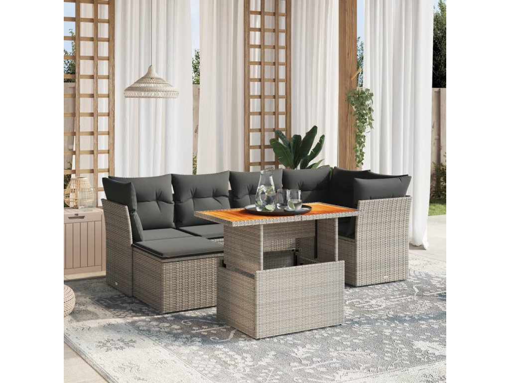 vidaXL 7-dielna záhradná súprava pohoviek s vankúšmi sivá polyratanová