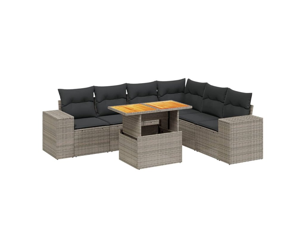 vidaXL 7-dielna záhradná súprava pohoviek s vankúšmi sivá polyratanová