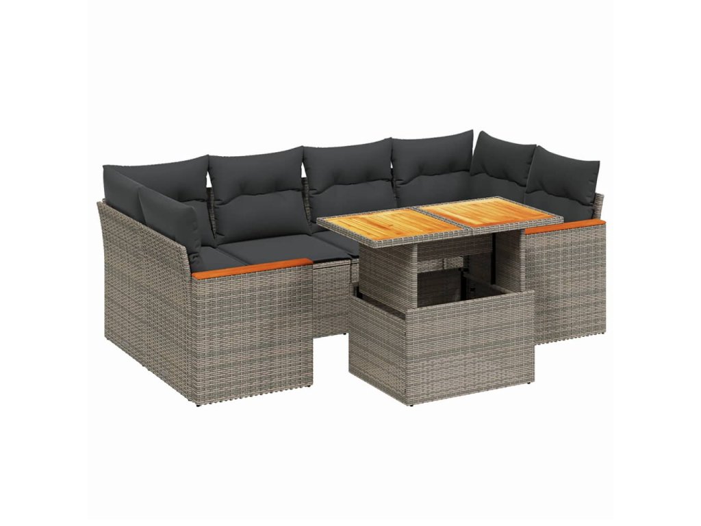 vidaXL 7-dielna záhradná súprava pohoviek s vankúšmi sivá polyratanová