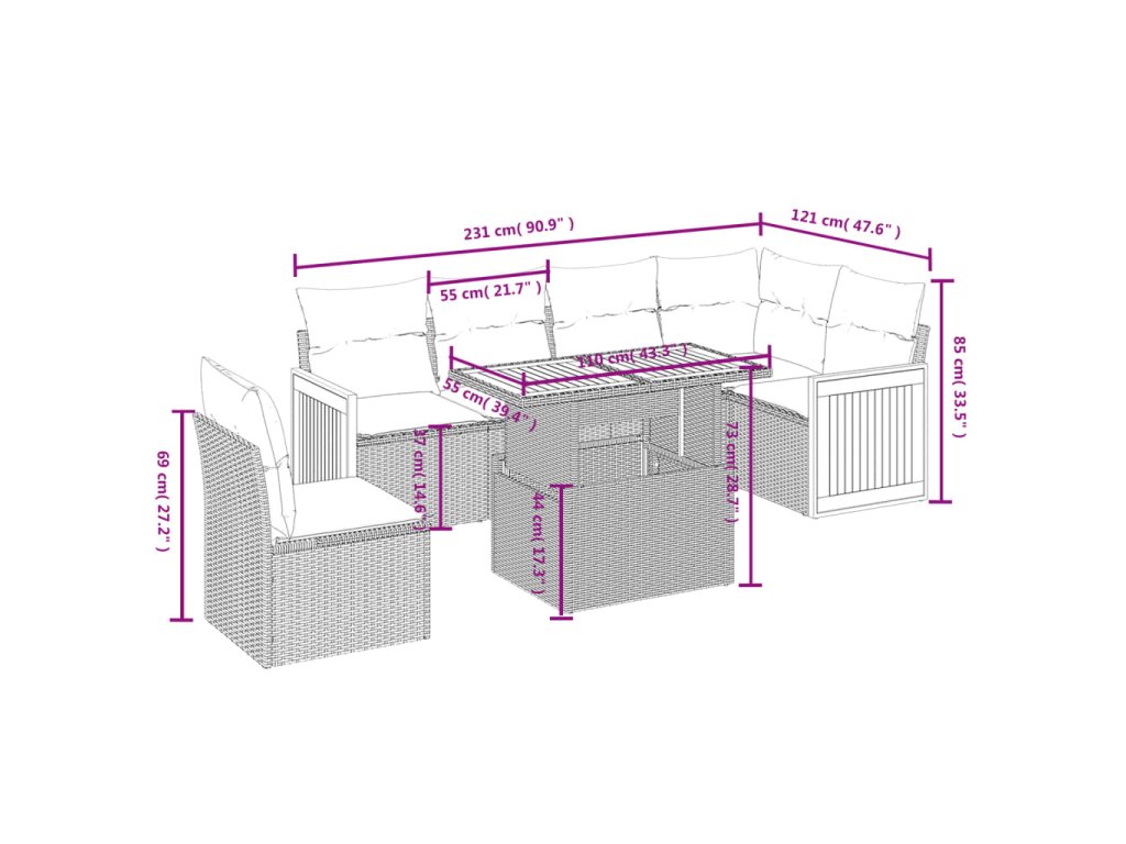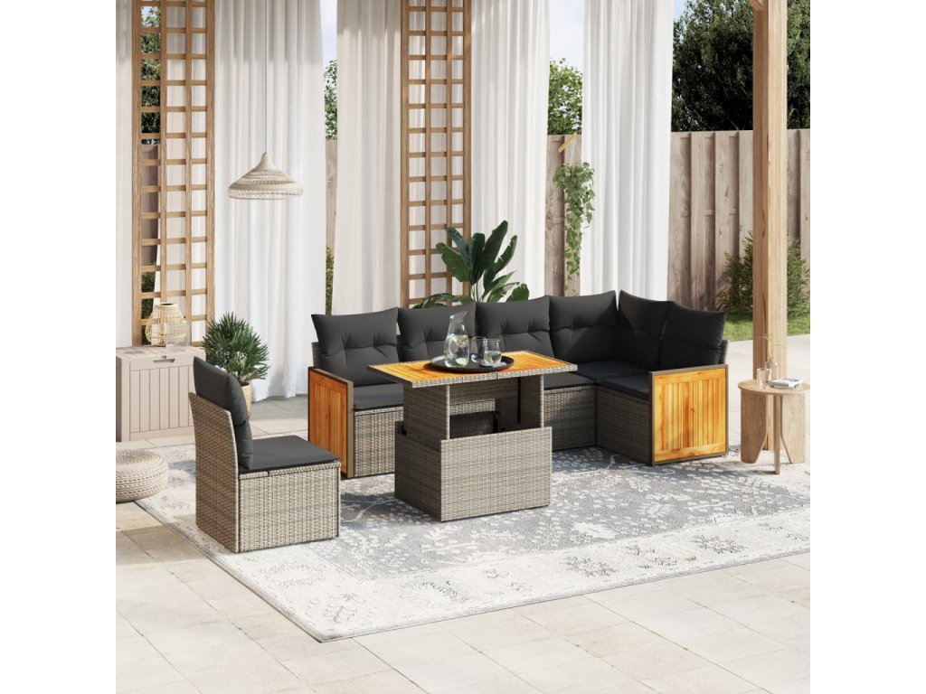 vidaXL 7-dielna záhradná súprava pohoviek s vankúšmi sivá polyratanová