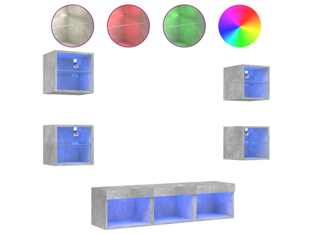 vidaXL 7-dielne TV nástenné skrinky s LED betónovo sivé kompozit.drevo