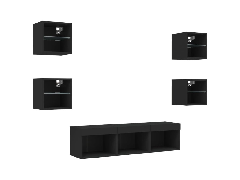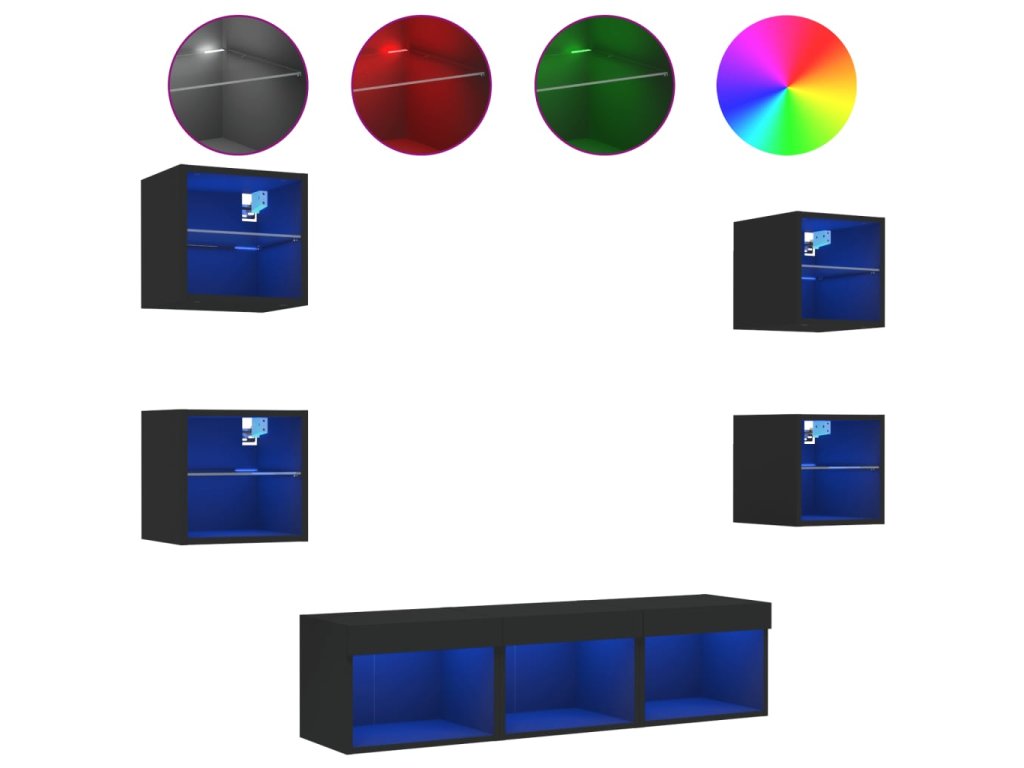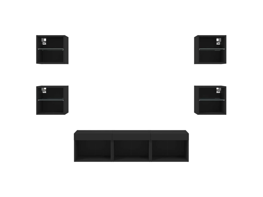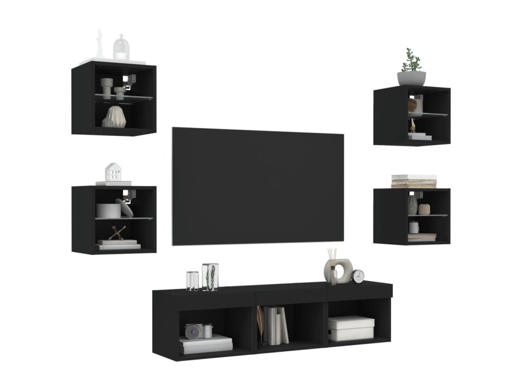 vidaXL 7-dielne TV nástenné skrinky s LED čierne kompozitné drevo