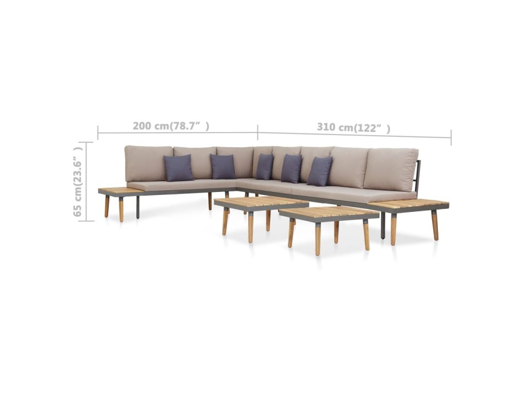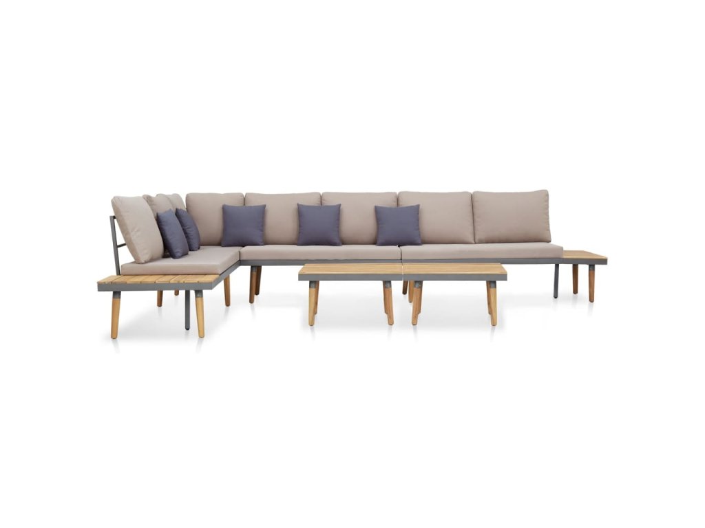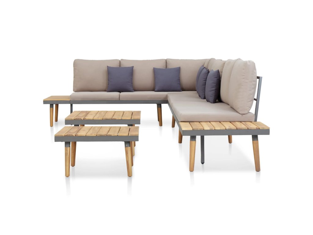 Naša odolná súprava záhradného nábytku sa jednoducho čistí a je vyrobená z akáciového masívu. Ide o drevo tropického listnatého stromu, ktoré je odolné voči poveternostným vplyvom a naozaj trvácne, takže vám vydrží dlhé roky. Vďaka pevnému oceľovému rámu je táto sedacia súprava na terasu veľmi stabilná a trvácna. Na menšie drevené časti si môžete položiť občerstvenie, nápoje, čajové šálky, knihy alebo iné drobnosti. Súprava sa dodáva s veľmi pohodlnými, nahusto vyčalunenými podložkami a vankúšmi. Poťahy z polyesteru si nevyžadujú náročnú údržbu a dajú sa zvliecť a oprať. Našu záhradnú súpravu je potrebné zmontovať.