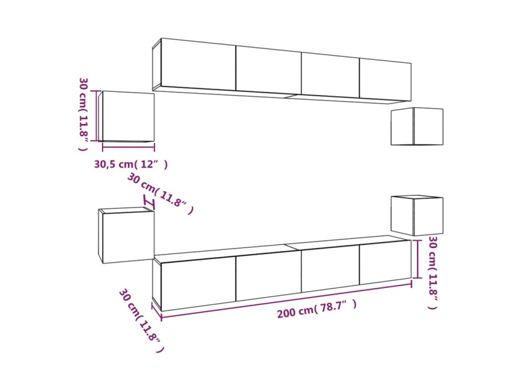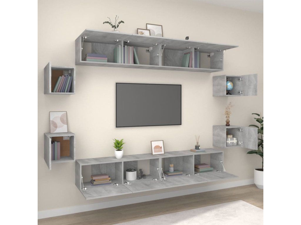 vidaXL 8-dielna súprava TV skriniek sivý dub sonoma spracované drevo