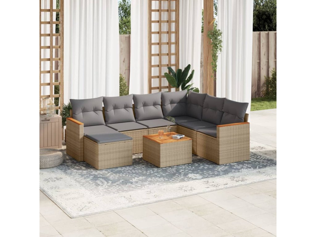 vidaXL 8-dielna záhr.sedacia súprava s vankúšmi mix béžovej polyratan