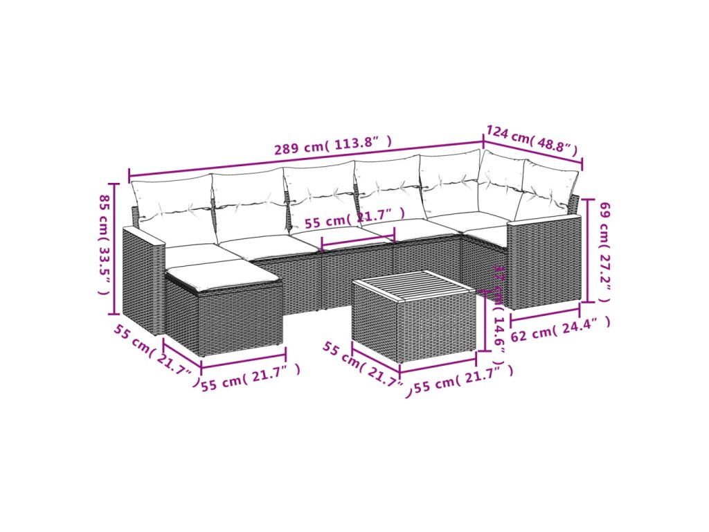 vidaXL 8-dielna záhr.sedacia súprava s vankúšmi mix béžovej polyratan