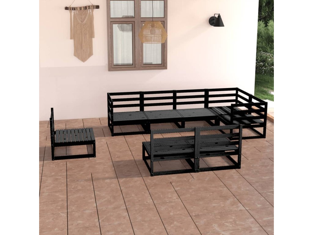 vidaXL 8-dielna záhradná sedacia súprava čierna masívna borovica