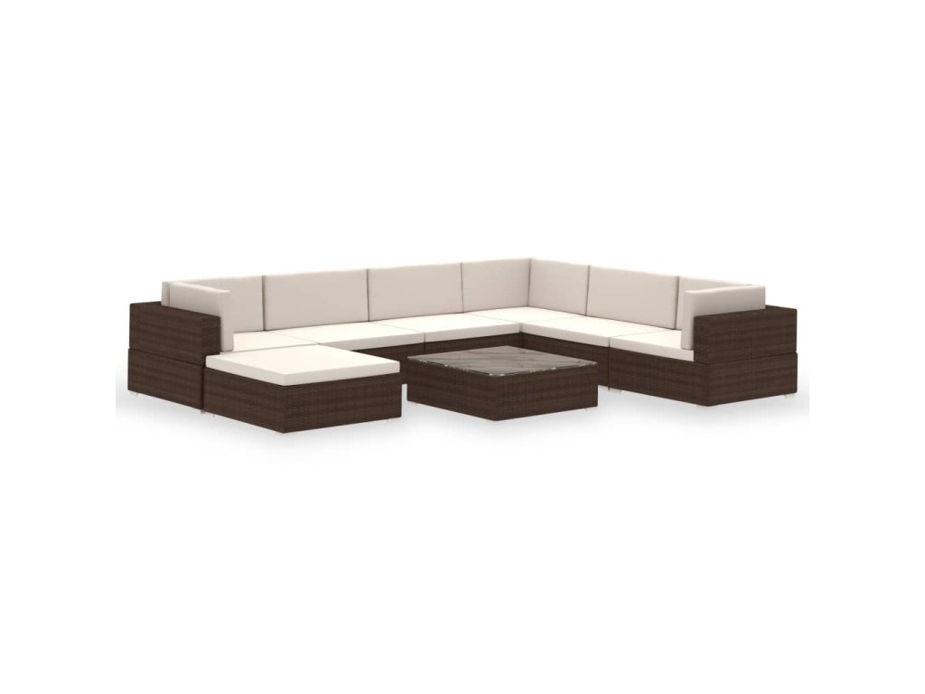 vidaXL 8-dielna záhradná sedacia súprava+podložky, hnedá, polyratan