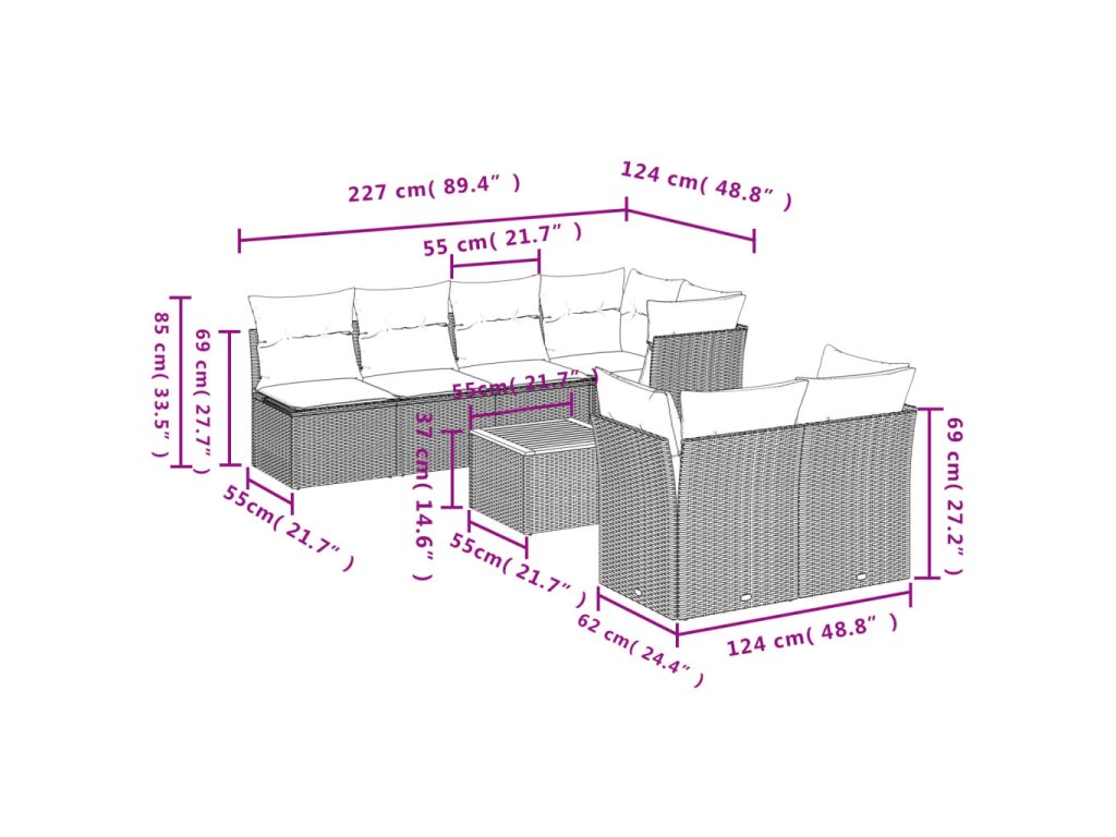- Modulárny dizajn: Táto súprava vonkajšieho nábytku má modulárny dizajn, vďaka čomu je úplne flexibilná a ľahko sa premiestňuje, takže si môžete vytvoriť prispôsobené usporiadanie vonkajšieho nábytku.