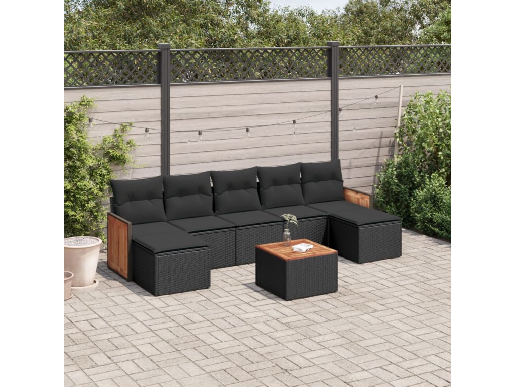 vidaXL 8-dielna záhradná sedacia súprava s podložkami polyratan čierna