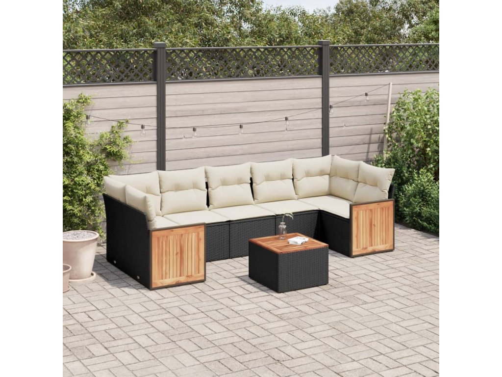vidaXL 8-dielna záhradná sedacia súprava s podložkami polyratan čierna