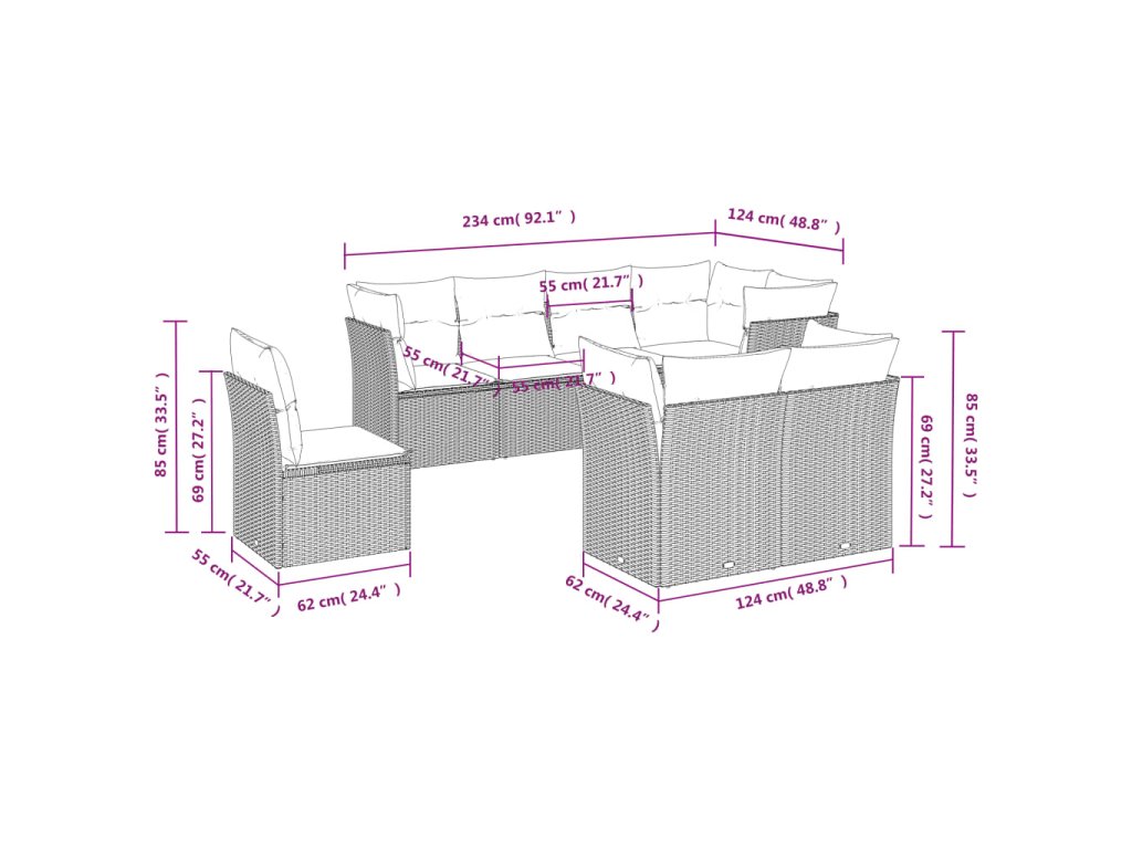 - Modulárny dizajn: Táto súprava vonkajšieho nábytku má modulárny dizajn, vďaka čomu je úplne flexibilná a ľahko sa premiestňuje, takže si môžete vytvoriť prispôsobené usporiadanie vonkajšieho nábytku.