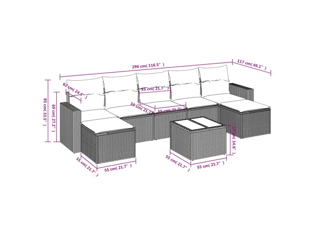 - Modulárny dizajn: Táto súprava vonkajšieho nábytku má modulárny dizajn, vďaka čomu je úplne flexibilná a ľahko sa premiestňuje, takže si môžete vytvoriť prispôsobené usporiadanie vonkajšieho nábytku.
