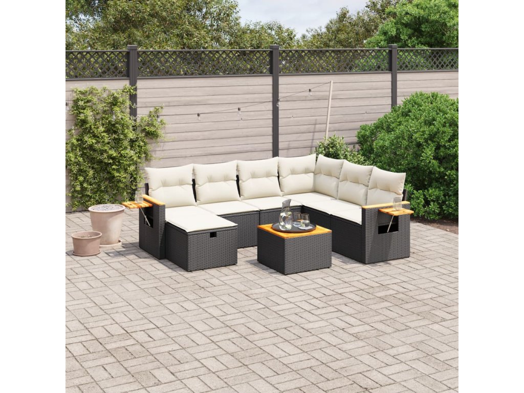 vidaXL 8-dielna záhradná sedacia súprava s podložkami polyratan čierna