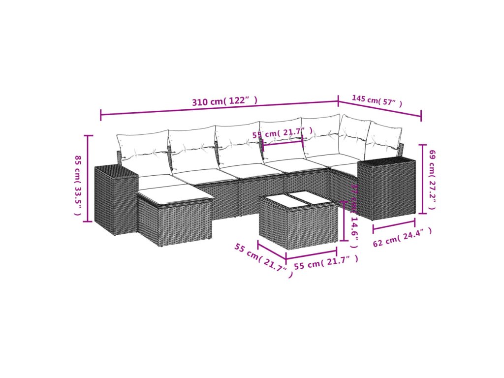 - Modulárny dizajn: Táto súprava vonkajšieho nábytku má modulárny dizajn, vďaka čomu je úplne flexibilná a ľahko sa premiestňuje, takže si môžete vytvoriť prispôsobené usporiadanie vonkajšieho nábytku.
