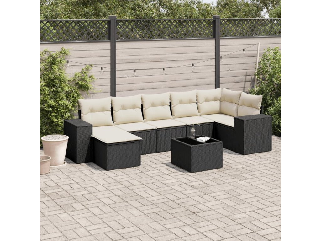 vidaXL 8-dielna záhradná sedacia súprava s podložkami polyratan čierna
