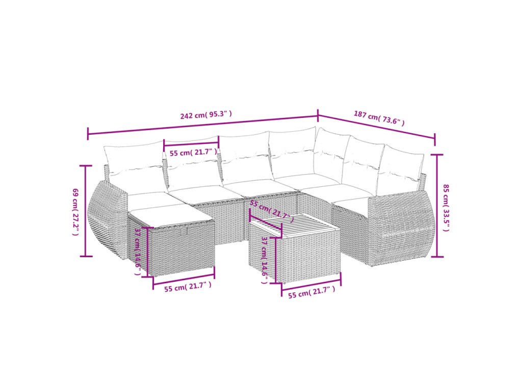 - Modulárny dizajn: Táto súprava vonkajšieho nábytku má modulárny dizajn, vďaka čomu je úplne flexibilná a ľahko sa premiestňuje, takže si môžete vytvoriť prispôsobené usporiadanie vonkajšieho nábytku.