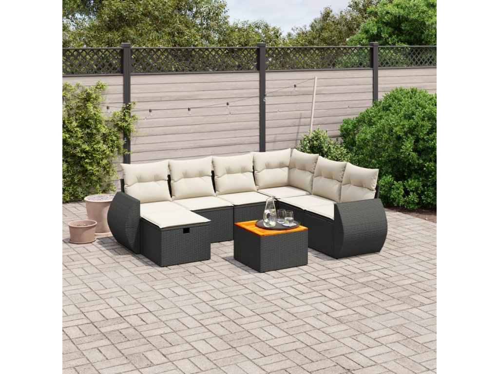 vidaXL 8-dielna záhradná sedacia súprava s podložkami polyratan čierna