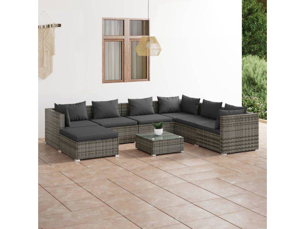 vidaXL 8-dielna záhradná sedacia súprava s podložkami polyratan sivá