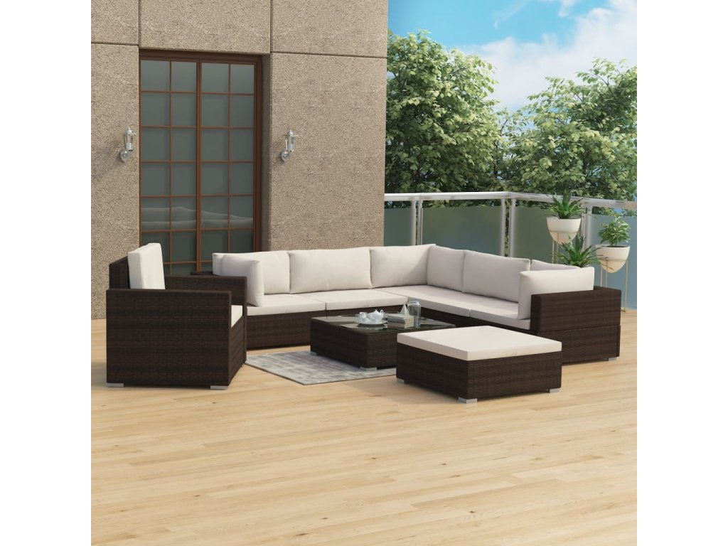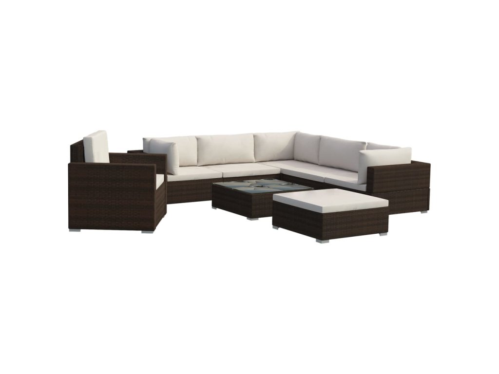 vidaXL 8-dielna záhradná sedacia súprava s vankúšmi hnedá polyratanová