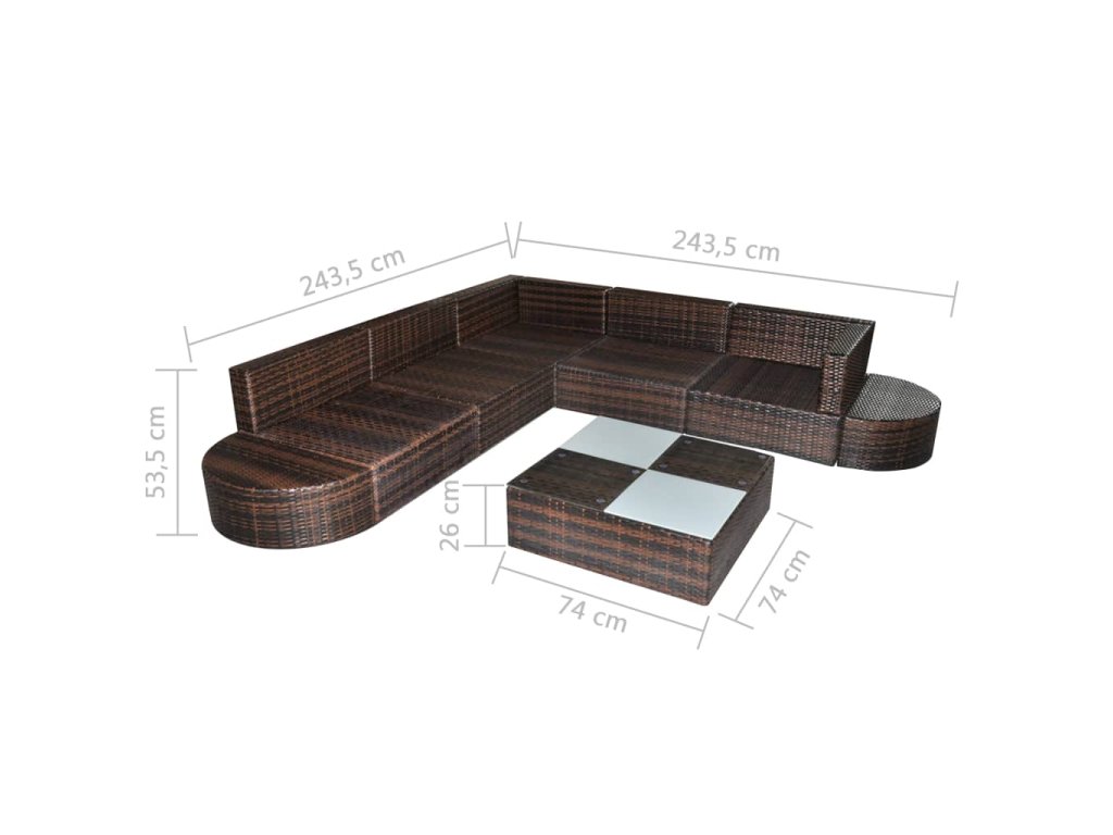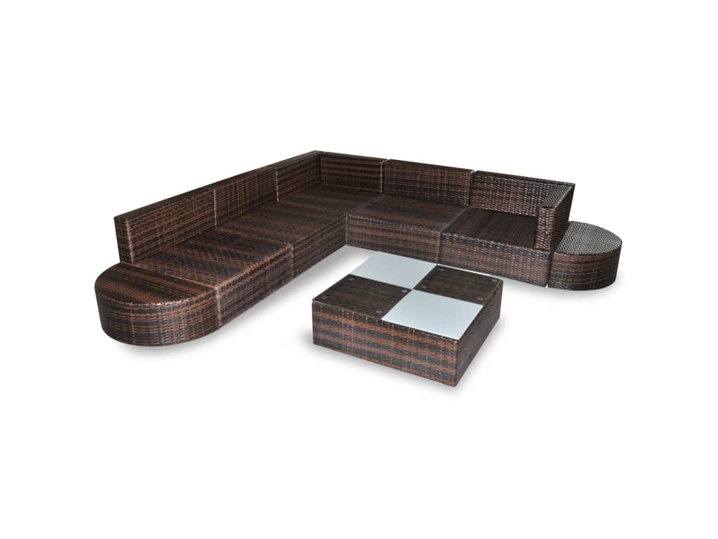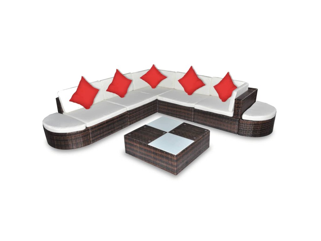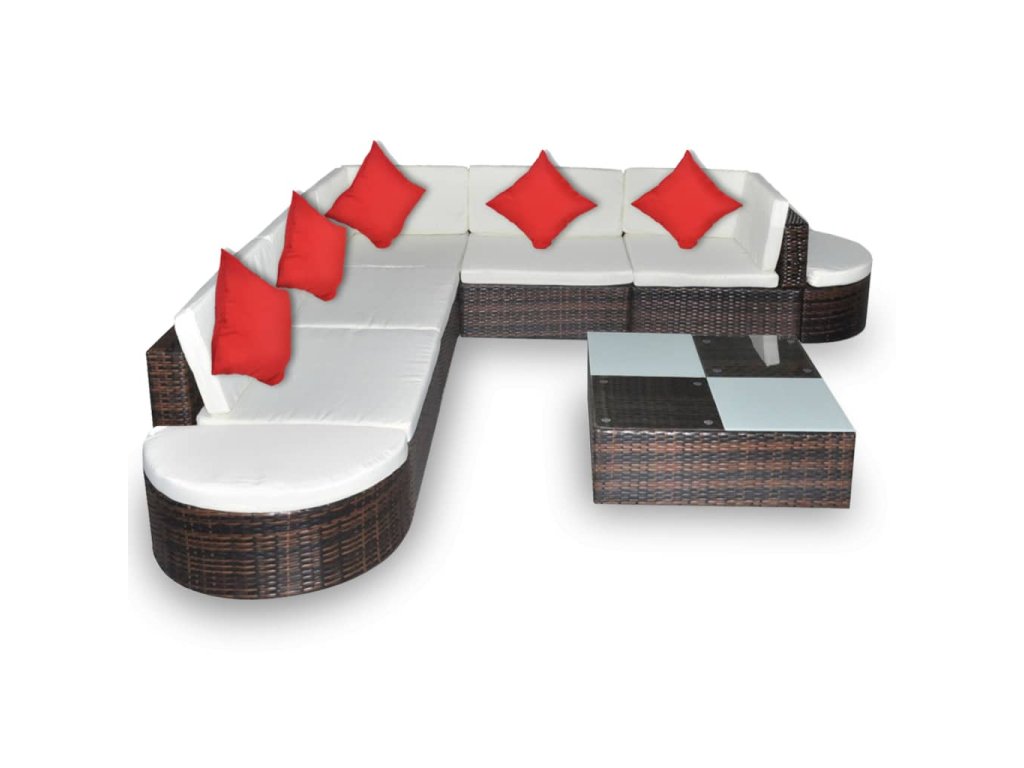 vidaXL 8-dielna záhradná sedacia súprava s vankúšmi hnedá polyratanová