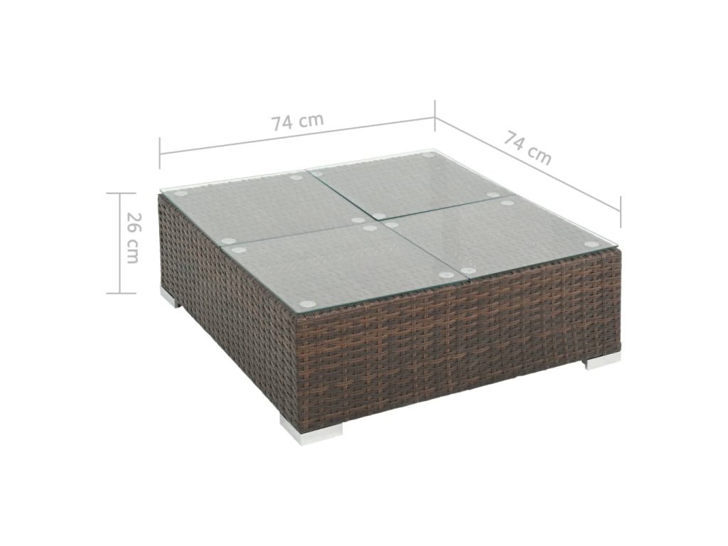 - Materiál: PE (polyetylén) ratan + sklenená doska stola + oceľový rám s práškovou povrchovou úpravou