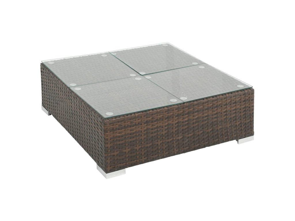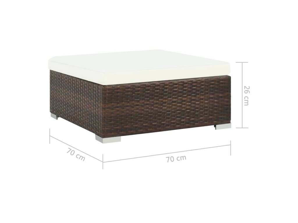 Táto polyratanová sedacia súprava pozostáva z 2 rohových pohovkiek, 4 stredových pohoviek, 1 konferenčného stolíka, 1 taburetky, 8 podložiek na operadlo a 7 podložiek na sedadlo a poskytne vám štýlové sedenie na záhradu alebo na terasu.