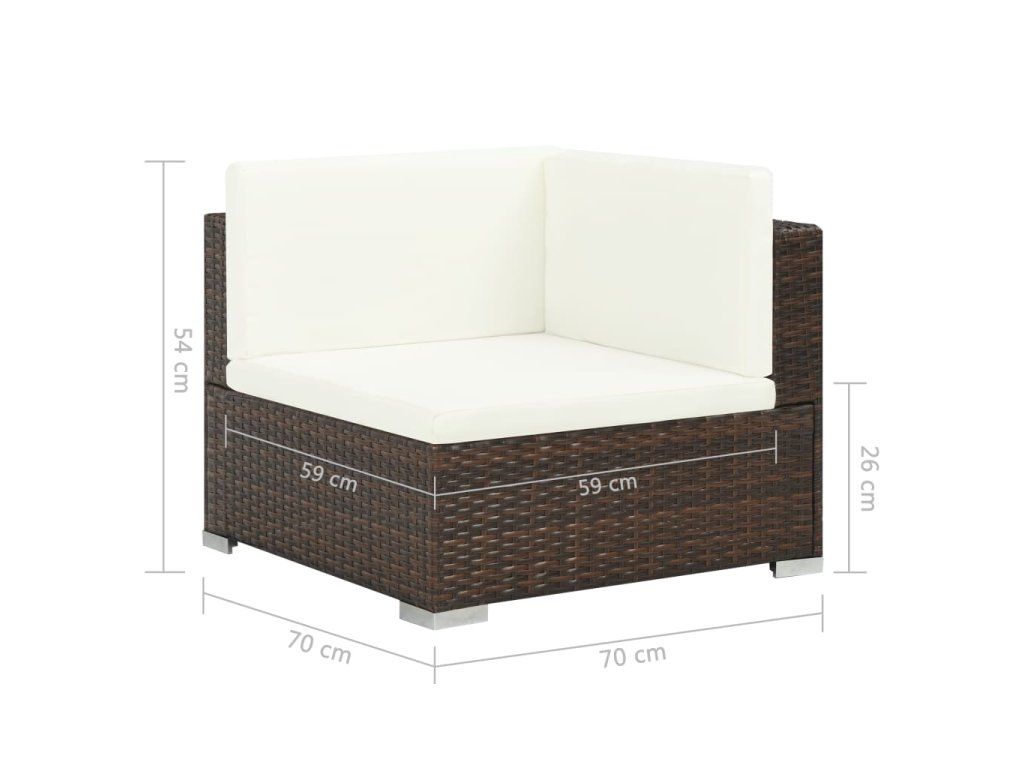 - Farba: Hnedý ratan + krémovo-biele podložky