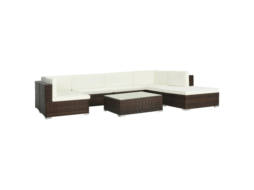 vidaXL 8-dielna záhradná sedacia súprava s vankúšmi hnedá polyratanová