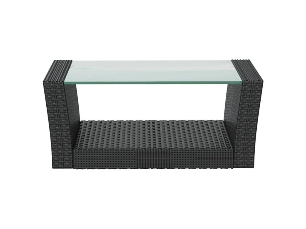 - Materiál: Oceľ s práškovou povrchovou úpravou, PE ratan, sklo