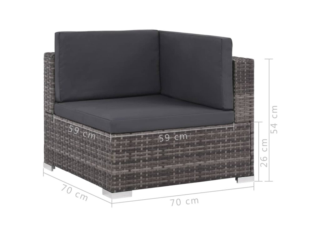 Sedacia súprava na terasu je vyrobená z vodovzdorného PE ratanu, vďaka čomu sa ľahko čistí, je odolná a vhodná na každodenné používanie v exteriéri. Oceľový rám s práškovou povrchovou úpravou súprave dodáva pevnosť a stabilitu. Je ľahká a jednotlivé sekcie sa dajú jednoducho kombinovať do rôznych konfigurácií. Táto súprava sa navyše dodáva s veľmi pohodlnými, nahusto vyčalunenými podložkami na sedadlo a vankúšmi na operadlo, ktoré poskytujú optimálne pohodlie pri sedení. Polyesterové obliečky si nevyžadujú náročnú údržbu a dajú sa zvliecť a oprať. Súprava sa jednoducho montuje.